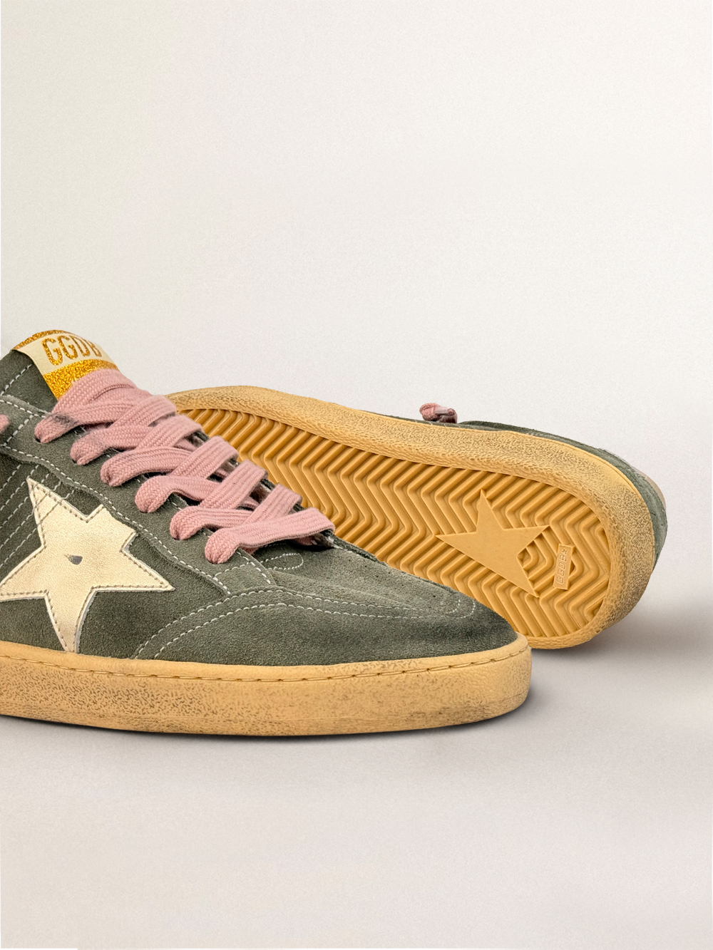 Эта модель с верхом из зелёной замши дополнена золотой кожаной звездой и задником. Розовые шнурки наносят финальный штрих: красивые вещи, которые никогда не выходят из моды.